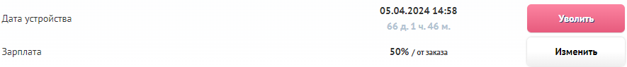 Чтобы уволить сотрудника или изменить его зарплату, нажмите на кнопку с пиктограммой шестерёнки, введите новое значение зарплаты и нажмите на кнопку «Изменить зарплату».