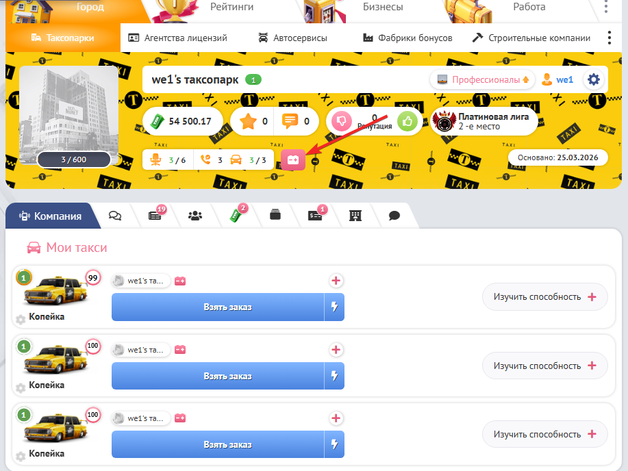 Чем выше “класс” Вашего таксопарка, тем больше нужно зарядов для полной зарядки “аккумулятора”