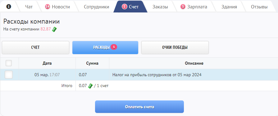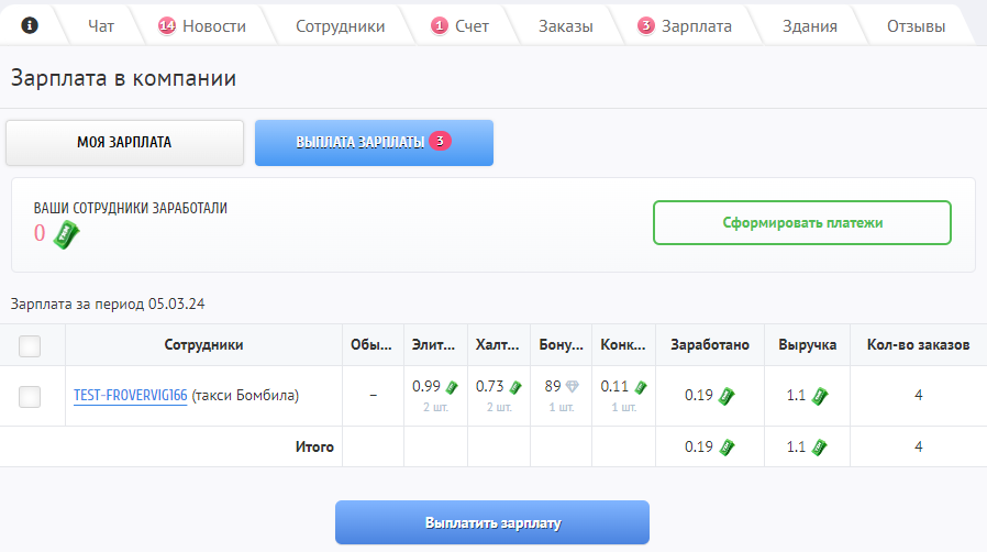 Становясь работодателем, Вы берете на себя налоговые обязательства за налоги с прибыли и зарплаты ваших сотрудников. Выполнить эти обязательства можно на вкладках бизнеса «счет» и «зарплата»