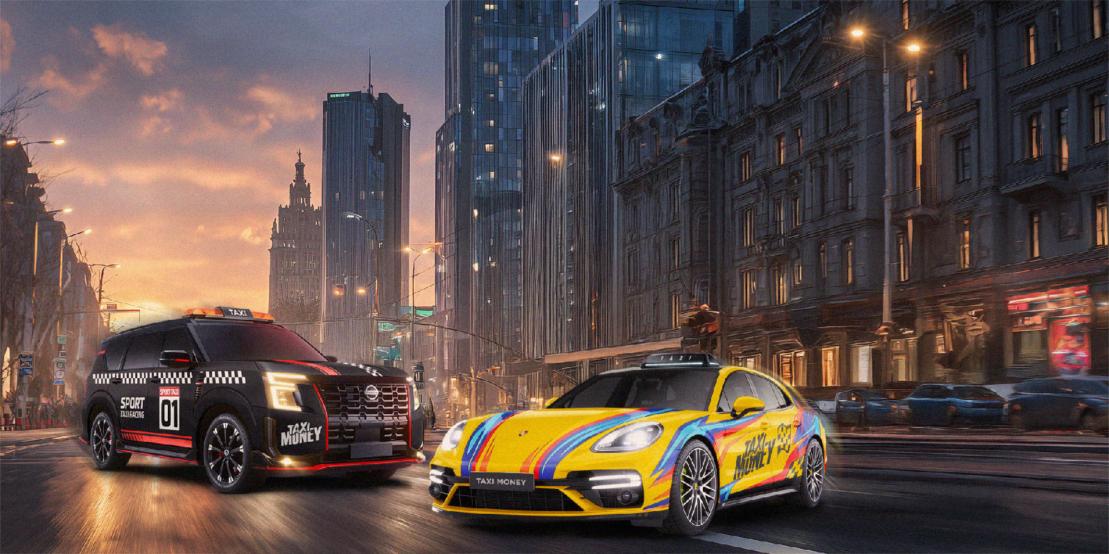 И здесь на сцену выходят наши акционные такси — Панамера и Патрол! Эти машины созданы специально для Рейдов. Они дают своим владельцам значительные преимущества в командных сражениях, превращая каждый заказ в мощный удар по противнику и каждый заработанный рубль — в шаг к победе всей команды!
