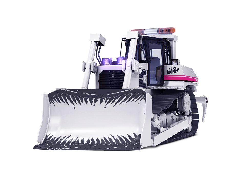 Во-вторых, в течение месяца при пополнении счёта покупок в Taxi-Money ты будешь получать в подарок самые ходовые и уникальные бульдозеры! Начнём с огненной новинки!