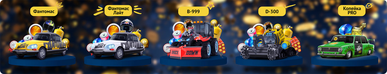 Помимо такси Экто-1, Экто-1 Лайт и бульдозера B-900 игра подарит тебе Копейку, Копейку PRO, Polo или Optima + кэшбек в подарок за депозиты на соответствующие суммы.