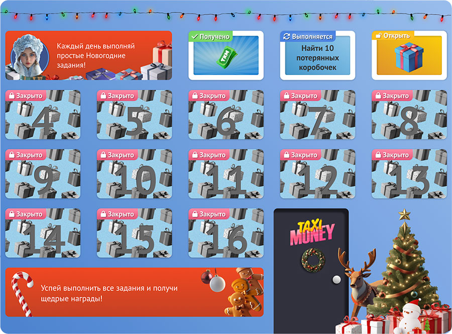 Вне всяких сомнений для каждого из игроков Taxi-Money Новый год — один из самых любимых праздников! Поэтому скорее заглянем под новогоднюю ёлку на центральной площади Taxi-Polis! И посмотрим, как подарки мы для вас приготовили!